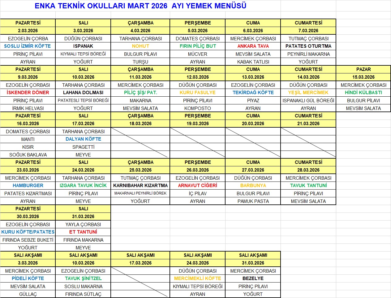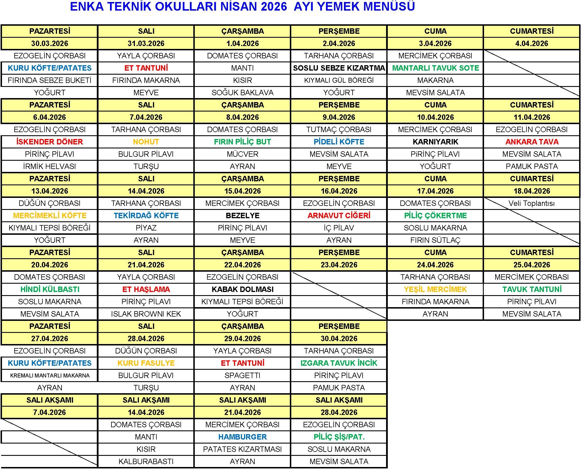 YEMEK MENÜSÜ